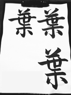右上の「葉」の字は石の硯で磨った墨汁、右下は合成、左上は墨液です。数枚書いた限りでは顕著な違いは無かったので、表装するとか墨が下りづらくなった時に砥石で鋒鋩をたてたいなどの問題が無ければ合成硯でも充分お習字が楽しめると思います。