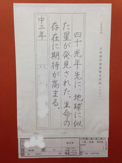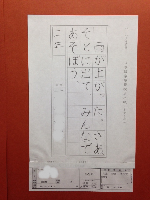 毛筆の募集もある日本習字展は2年に1度なので、今年は硬筆展の年です。上達と入賞めざしてがんばりましょう(^^♪