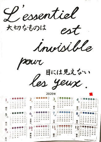 2020年度のカレンダーに好きな言葉や歌詞を書いて、11月から12月にかけてオリジナルカレンダーを完成させました。