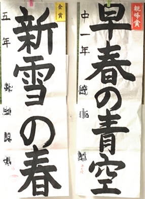 日本習字12月課題のかきぞめ競書が、それぞれ観峰賞、金、銀、銅、努力賞の認定を受けて戻ってきました。1月18日が雪だったのでお渡しできていない方もいらっしゃいますが、全員が昇級昇段できて明るい雰囲気の中、新年のお稽古がスタートしました。