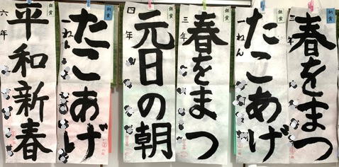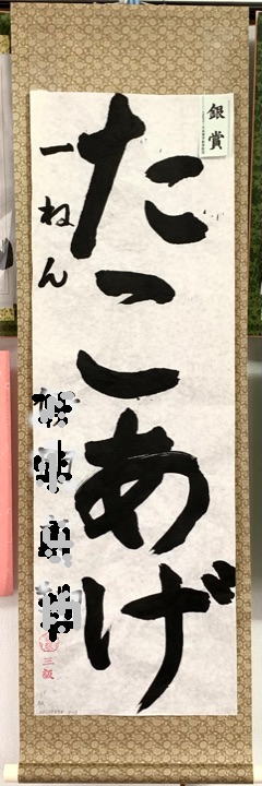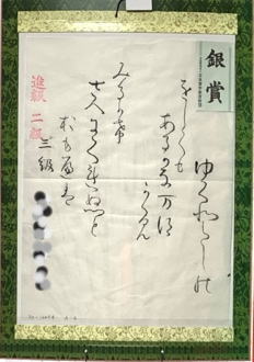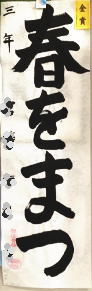 かきぞめ競書作品はそのままお返ししていますが、ご希望の方には実費をご負担いただいて簡易表装しておりますので(現在495円)お知らせください。