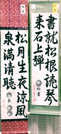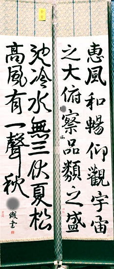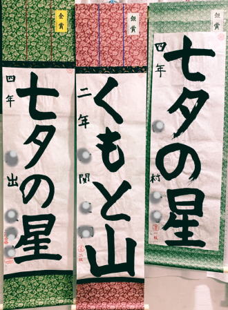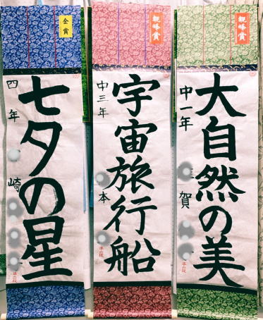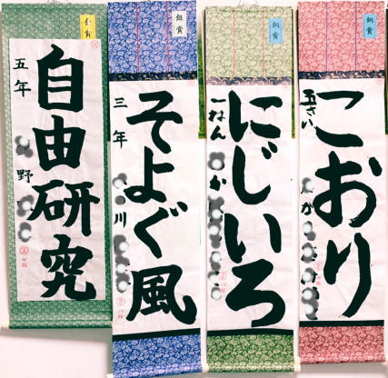 7月の課題を簡易表装をしてお返しいたしますので、しばらく飾って作品として鑑賞してみてください。壁に掛けると、机で書いているときより離れて見ることができます。よく眺めてみて自分の作品の、良い点や改善点を探してみてください。