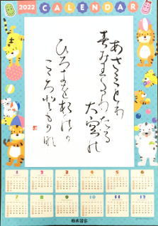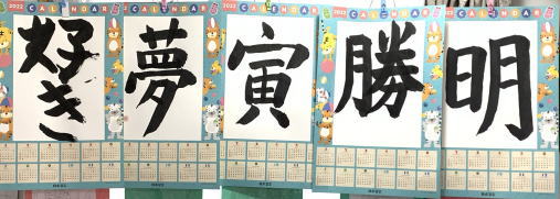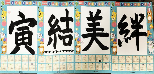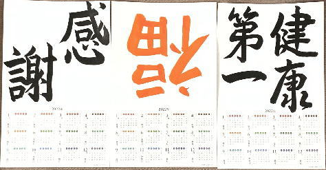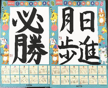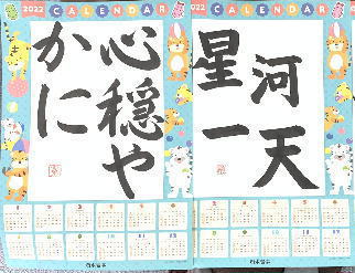2022年度の日本習字カレンダーに、11月から1月にかけて今回も好きな言葉や目標を書きました。