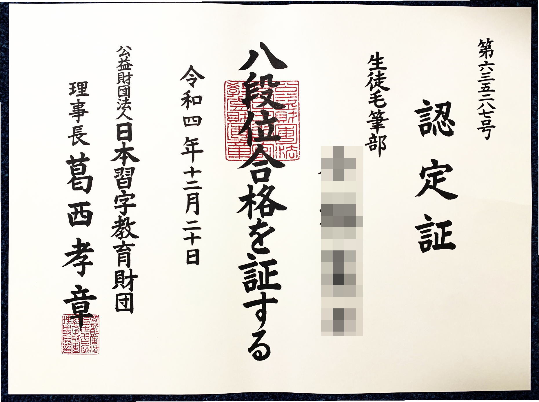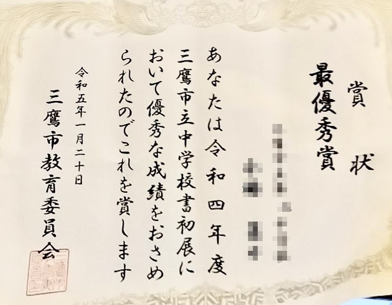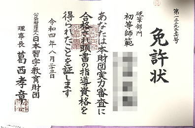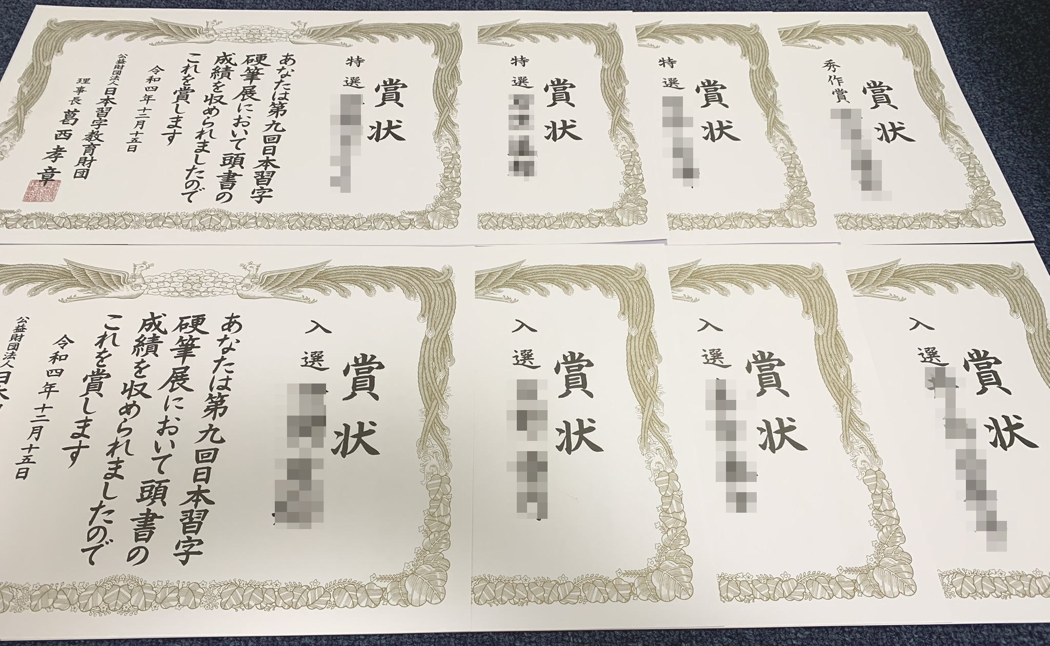 ホームページにぜひ、とお願いして映像を頂戴したものや、日本習字発行の賞状を掲載させていただきました。