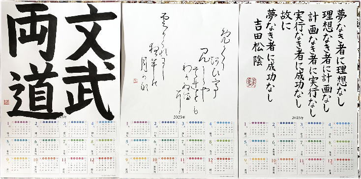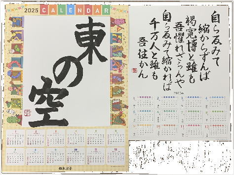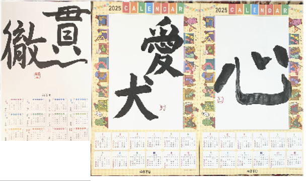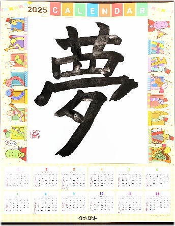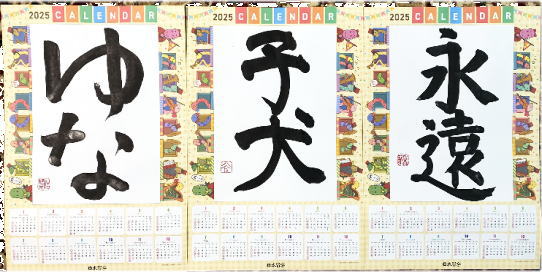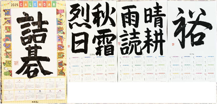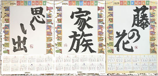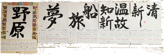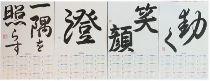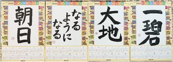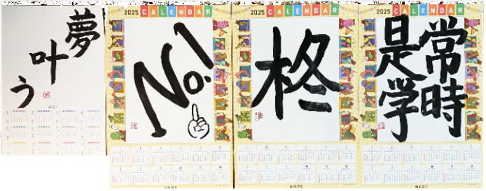 毎年恒例の日本習字カレンダーに自分の好きな文字や言葉を書きました。