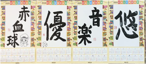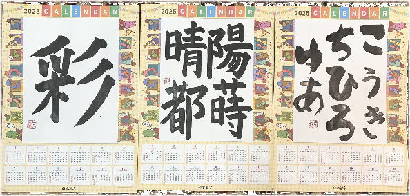 昨年は干支「龍」が一番人気でしたが、2025年「巳」はお手本の用意はしたものの採用されず。四字熟語、自分や家族の名前由来の作品が多くなりました。