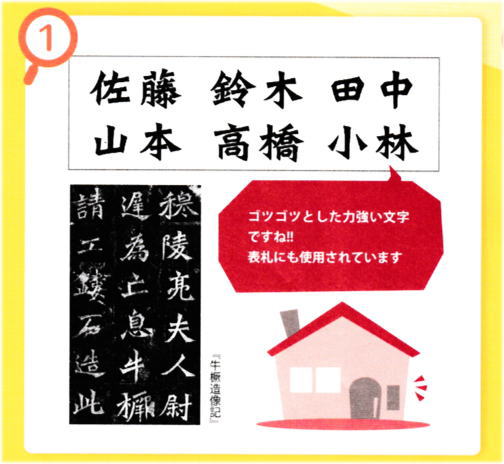 今年度の日本習字臨書部では「王羲之」「虞世南」「小野道風」が書いた字や、下の①の「牛橛造像記」を学んでいきます。