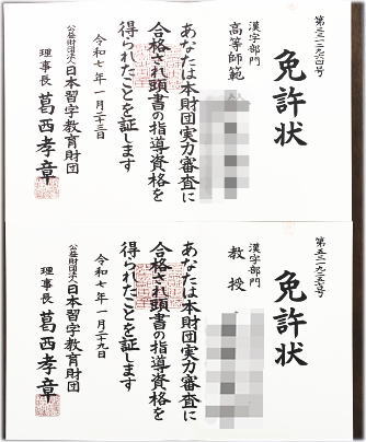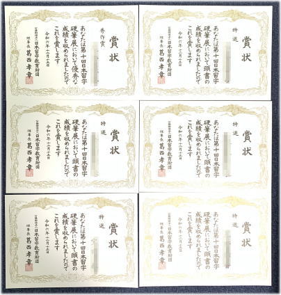 ホームページにぜひ、とお願いして映像を頂戴したものや、日本習字発行の賞状を掲載させていただきました。